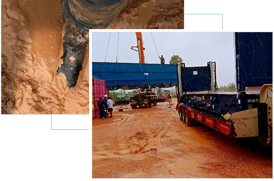 泰國(guó)漫長(zhǎng)的雨季也跟著“湊熱鬧”,遲遲不肯離去,持續(xù)的降雨讓未經(jīng)鋪設(shè)的路面變得更加崎嶇不平、泥濘不堪,每一個(gè)深深陷入泥濘的車轍和三達(dá)團(tuán)隊(duì)的雨靴腳印,都充斥著與路面“難舍難分”的味道。