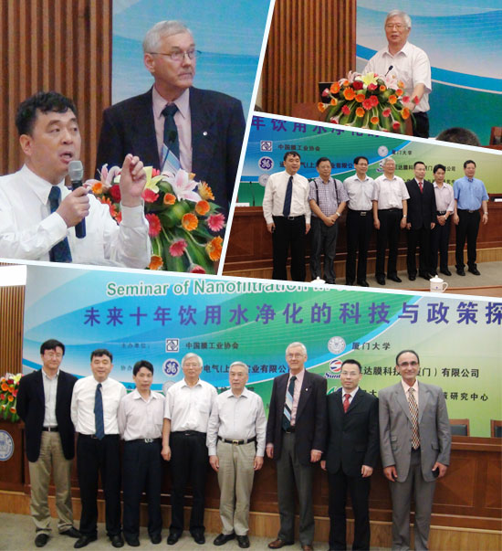 早在1999年時(shí)任福建省省長(zhǎng)的習(xí)近平來(lái)廈門大學(xué)調(diào)研時(shí)就指出:“膜技術(shù)是世界公認(rèn)的21世紀(jì)綠色、節(jié)能的高科技產(chǎn)業(yè)技術(shù)”。膜技術(shù)在微濾、超濾、納濾、反滲透等水凈化工藝中正在發(fā)揮越來(lái)越大的作用。本次高端論壇特邀美國(guó)GE公司水與工藝技術(shù)總工程師Peter Eriksson博士、中國(guó)膜工業(yè)協(xié)會(huì)名譽(yù)理事長(zhǎng)、國(guó)家液體分離膜工程技術(shù)中心首席科學(xué)家高從堦院士、新加坡國(guó)立大學(xué)李光耀公共學(xué)院特約研究員、國(guó)家發(fā)改委水政策專家楊尚寶教授、華中科技大學(xué)同濟(jì)醫(yī)學(xué)院公共衛(wèi)生學(xué)院飲用水安全與環(huán)境毒理學(xué)專家吳志剛教授、中國(guó)膜工業(yè)協(xié)會(huì)副理事長(zhǎng)、廈門大學(xué)水科技與政策中心首席科學(xué)家藍(lán)偉光教授齊聚廈大,共同探討了未來(lái)十年膜技術(shù)在解決飲用水問題中的地位和作用;膜技術(shù)在海水淡化、污廢水處理等領(lǐng)域中的應(yīng)用,通過(guò)水的循環(huán)利用解決水資源短缺問題;特別是納濾技術(shù)發(fā)展到今天,已能濾除水中的微污染,包括重金屬和有機(jī)化合物,又能保留水中微量的天然礦物質(zhì),是目前解決飲用水問題的方案,如果說(shuō)膜技術(shù)是水處理的皇冠技術(shù),那么納濾技術(shù)就是鑲嵌在這頂皇冠上的明珠。